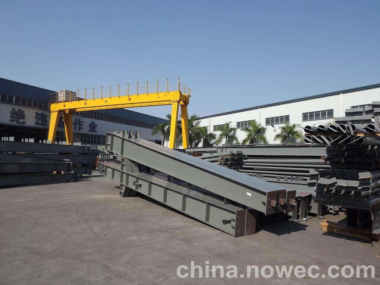 条状单元一般沿长跨方向分割,其宽度约为1~3个网格,其长度为l2或l2/2(l2为短跨跨距)。块状单元一般沿岳阳网架平面纵横向分割成矩形或正方形单元。每个单元的重量以现有起重机能胜任为准。条(块)与条(块)之间可以直接拼装,也可空一网格在高空拼装。由于条(块)状单元是在地面拼装,因而高空作业量较高空散装法大为减少,拼装支架也减少很多,又能充分利用现有起重设备,故较经济。这种安装方法适用于分割后网架的钢度和受力状况改变较小的各类中小型网架,如两向正交正放四角锥、正放抽空四角锥等网架。